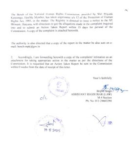 राष्ट्रीय मानवाधिकार आयोग की ओर से जारी किए गए नोटिस में मामले की पूरी तरह से निष्पक्ष जांच करने और आयोग के समक्ष 15 दिन के भीतर कार्रवाई रिपोर्ट प्रस्तुत करने को कहा है।